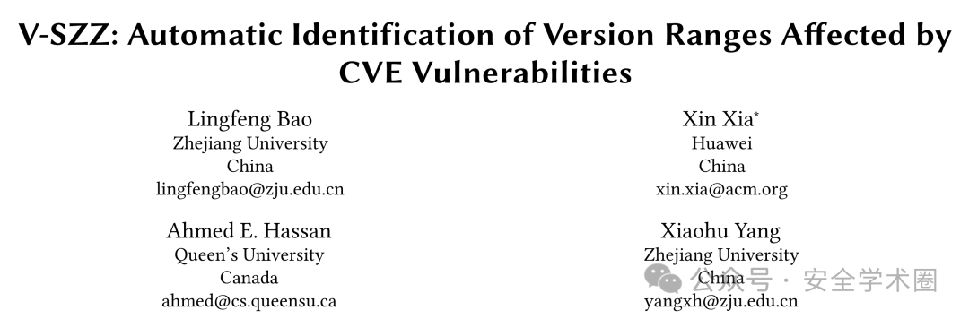 浙江大学 | V-SZZ:自动识别受CVE漏洞影响的版本范围