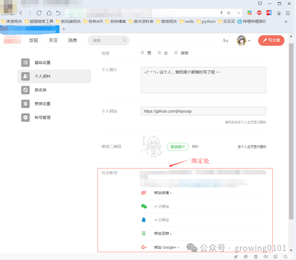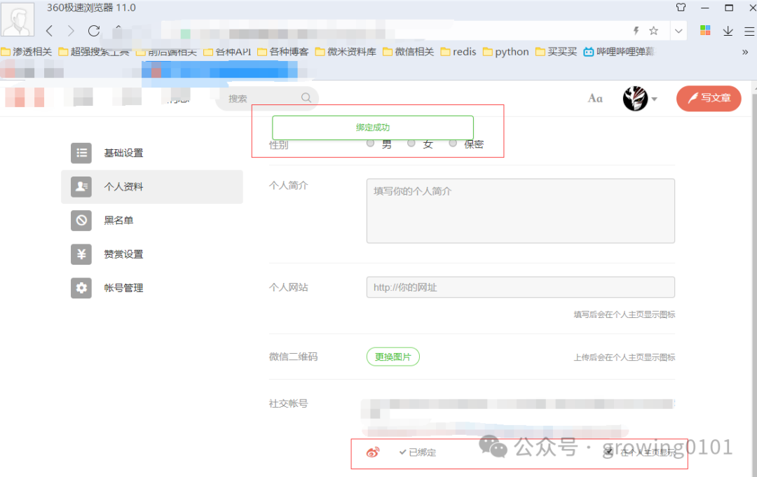 绑定微博的url: