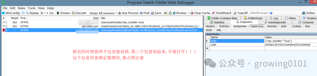 步骤3:攻击者-点击绑定微博抓包