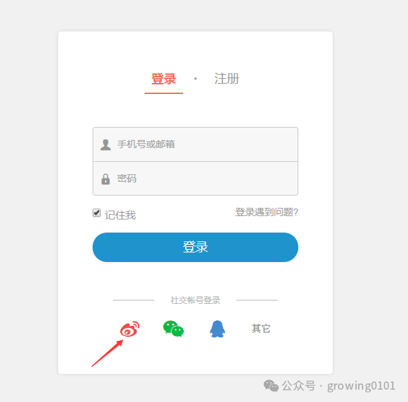 从上面看其实有很多绑定账号快捷登录的方法,但是微博绑定的用户肯定是比较少的所以我们用它