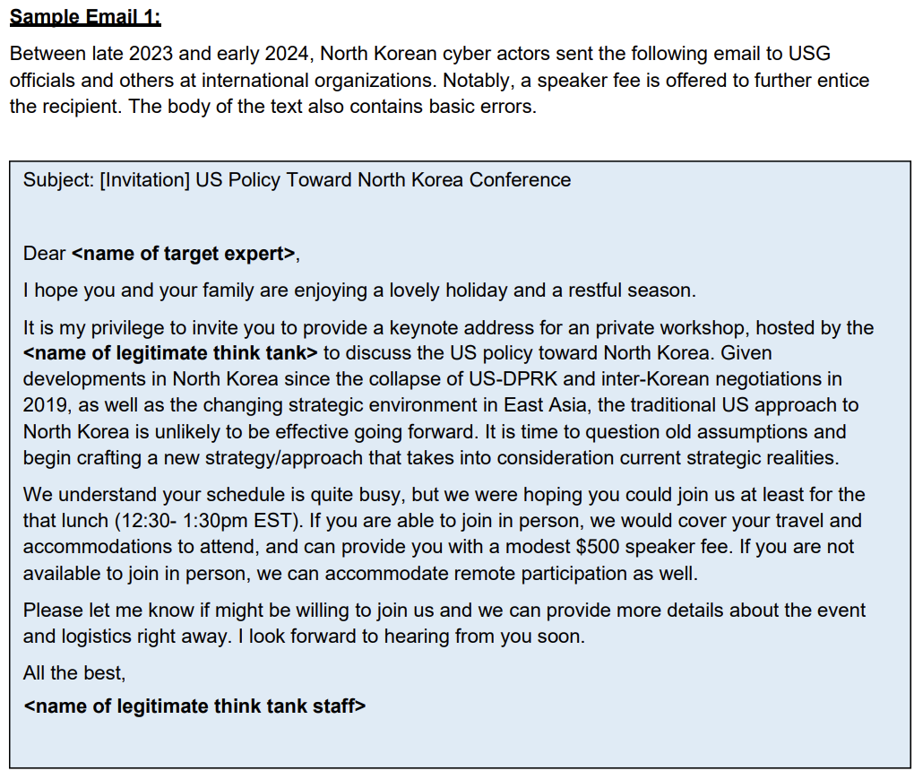 在美国或韩国从事朝鲜、亚洲、中国和/或东南亚事务的任何人都应该留意这些电子邮件,尤其是政府官员和军人。