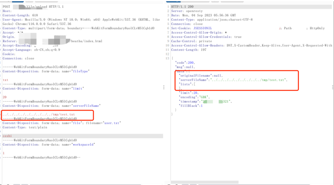 那么将它转成是前台的上传漏洞了。经过测试发现,目录也是可以穿越的,文件名可以任意。读取文件接口也存在穿越问题。