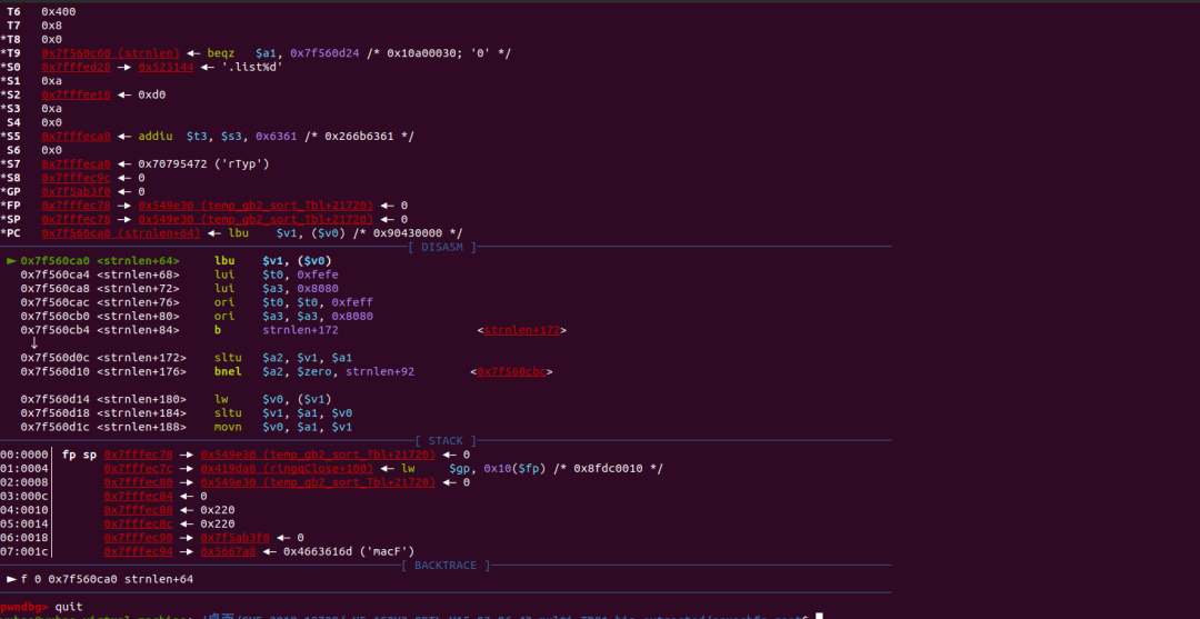 这次复现,感觉对mips架构的一些指令以及函数调用更加清晰了,而且也学会了mips中如何构建简单的rop链。