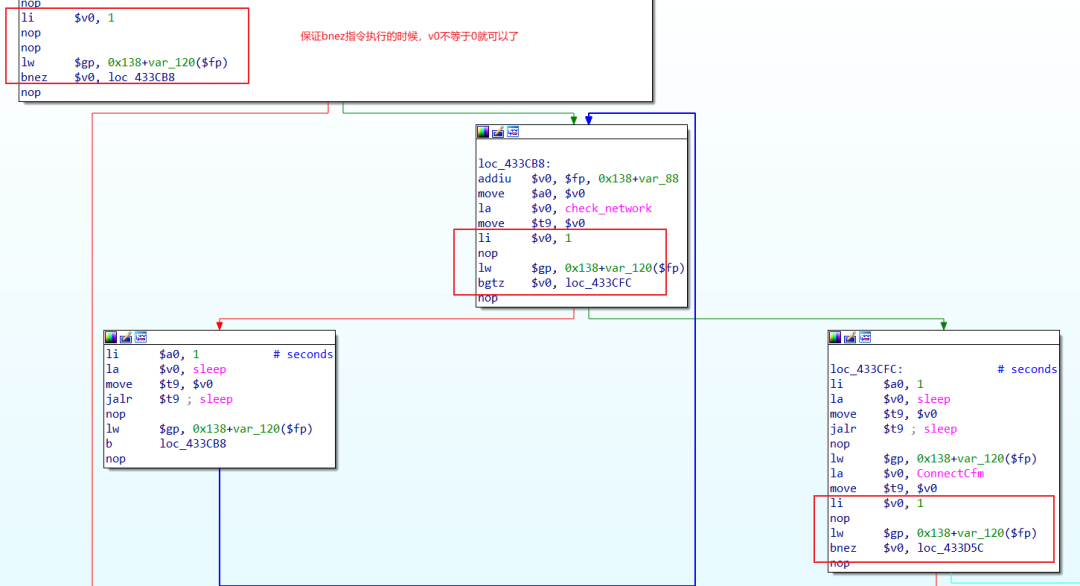 所以想patch,直接patch掉jalr这一句就行,然后将v0寄存器赋值为1即可。