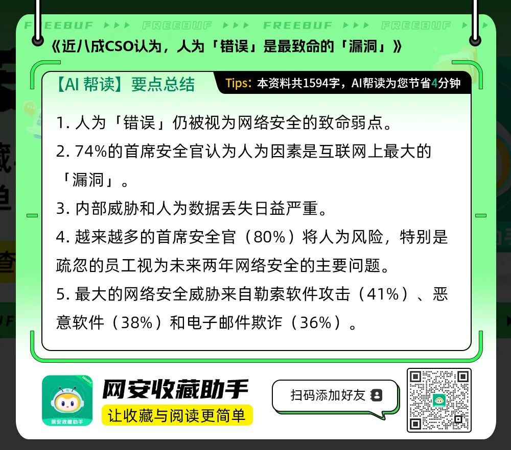 近八成CSO认为,人为「错误」是最致命的「漏洞」