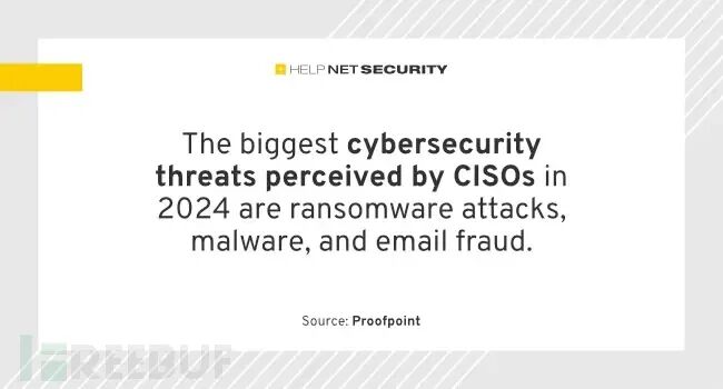 2024 年,受访的 CSO 指出,最大的网络安全威胁来自勒索软件攻击(41%)、恶意软件(38%)和电子邮件欺诈(36%)。(这一现状与 2023 年有所不同,商业电子邮件泄露(BEC)从第一位下降到第三位,勒索软件上升到第一位,恶意软件上升到第二位)