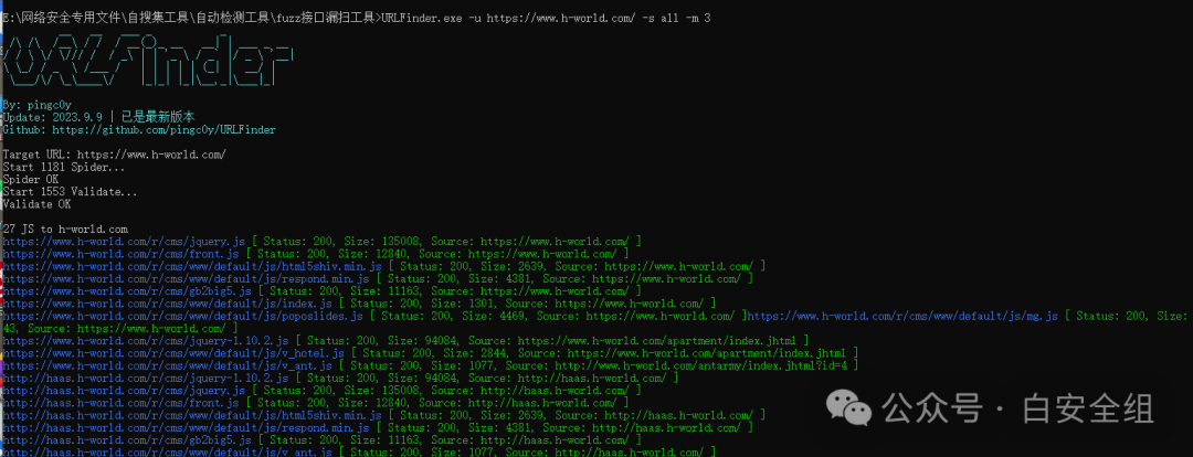 URLFinder.exe -s all -m 3 -f url.txt -o .