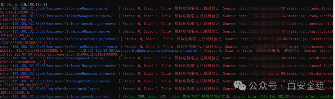 上面我们会搜集出一些js文件,比如我这里检索出了一些后台的js文件,属于未授权的js文件