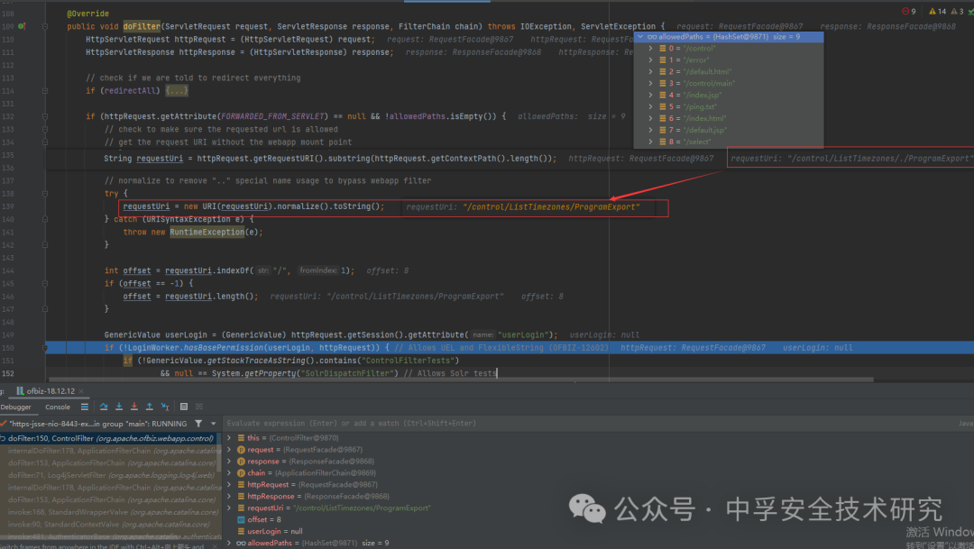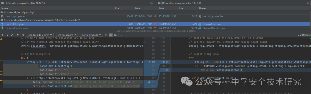 来绕过 18.12.13 版本的修复代码,于是官方在 18.12.14 版本的 ControlFilter.doFilter() 中添加过滤了