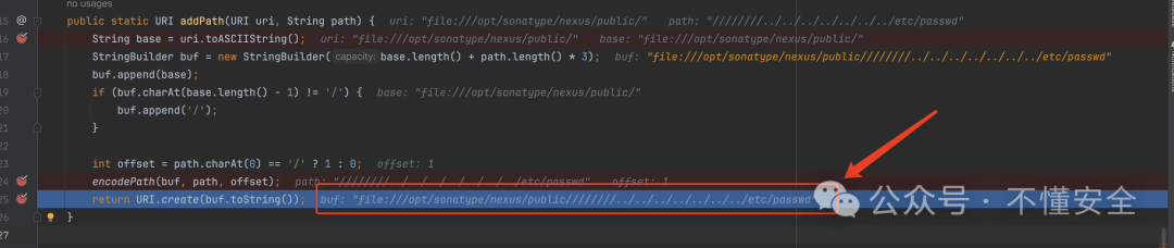 – • 漏洞成因Nexus Repository仅依赖Jetty自带的方法进行请求路径的安全检查,而未进行深入的验证,导致攻击者可以利用路径穿越攻击访问文件系统上的任意位置。