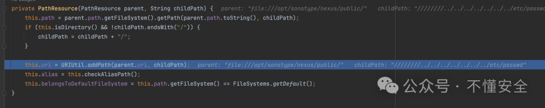 再回头来看,只要canonicalPath不为null, subpath是直接交给PathResource对象的,然后addPath拼接url