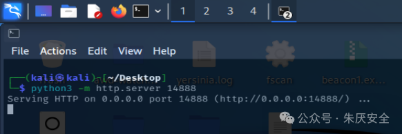 将生成exe马上传至远程VPS (这里我是kali虚拟机),远程VPS启动http服务(这里是为了后面受害机器远程下载恶意文件)