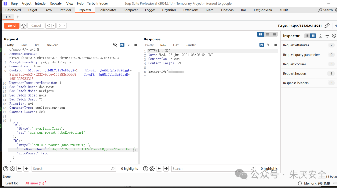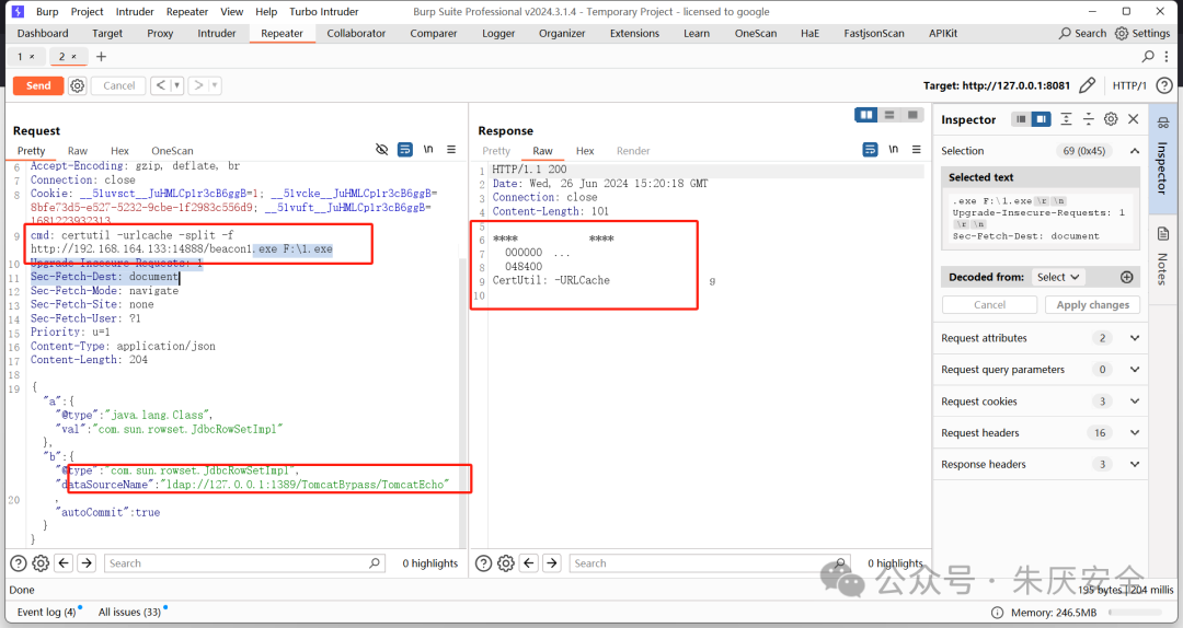 漏洞验证工具:burpsuite2024版本、JNDIExploit-1.4-SNAPSHOT.jar (工具获取可发送关键字)