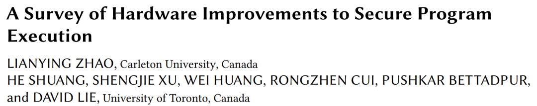 范戴克,把新的安全防线构建在硬件层面上,从而试图“一劳永逸”地解决所有上层的软件安全问题。可现实真的如此美好吗?今天我们要介绍的这篇来自ACM Computing Survey的论文A Survey of Hardware Improvements to Secure Program Execution会回答你的各种疑问: