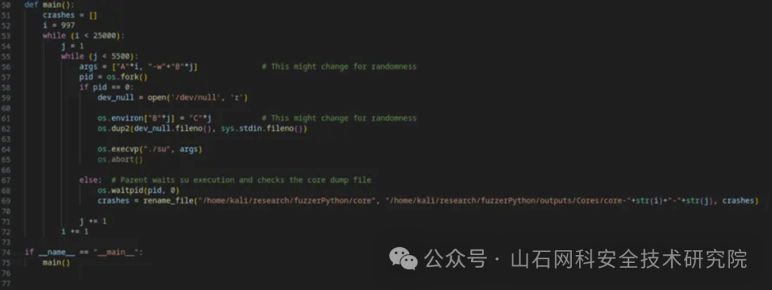 这个 fuzzer 非常基础,因为它只迭代测试了不同长度的程序名称和环境变量。fuzzer 监视每次执行产生的核心转储文件, 如果之前没有记录过核心转储,fuzzer 就会存储它,这使得能够跟踪具有不同错误的核心转储文件,及其相应的参数组合。