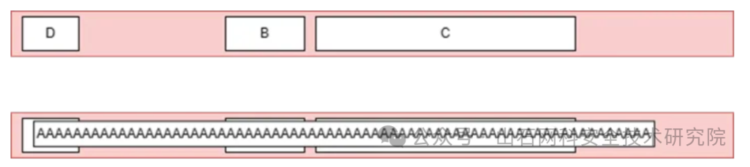 在上图中,D 是动态分配的内存,但由于堆溢出,可以写入超出 D 边界的数据,这意味着它将覆盖 B 和 C 并破坏堆结构。这种情况将会导致各种崩溃: