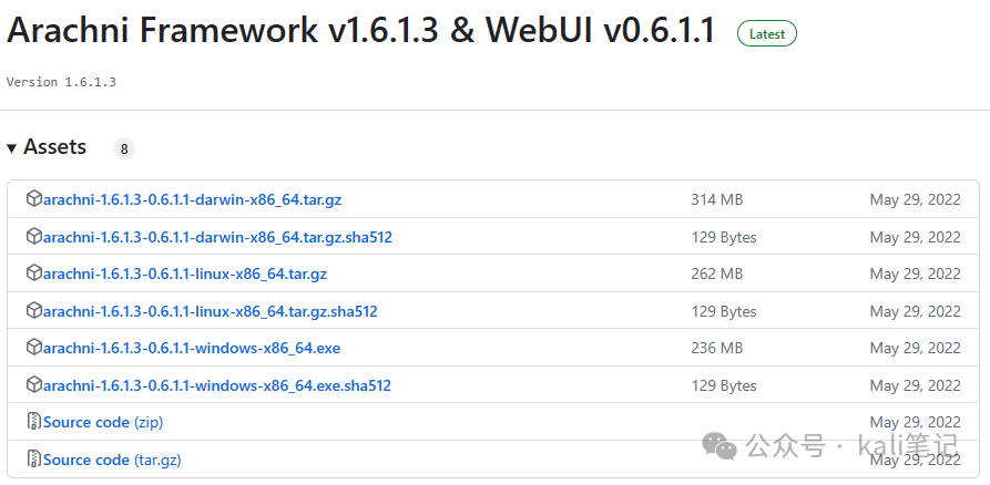 访问Arachni项目地址https://github.com/Arachni/arachni/releases,根据你的环境,选择你需要的版本,如下图:
