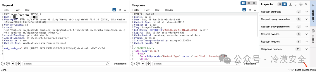 out_trade_no=' AND (SELECT 8078 FROM (SELECT(SLEEP(5)))eEcA) AND 'aEmC'='aEmC