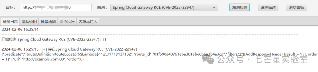 复现了几个spring之前的漏洞,顺手就武器化了下,工具目前支持Spring Cloud Gateway RCE(CVE-2022-22947)、Spring Cloud Function SpEL RCE (CVE-2022-22963)、Spring Framework RCE (CVE-2022-22965) 的检测以及利用,目前仅为第一个版本,后续会添加更多漏洞POC,以及更多的持久化利用方式