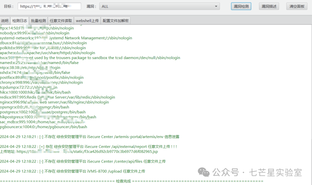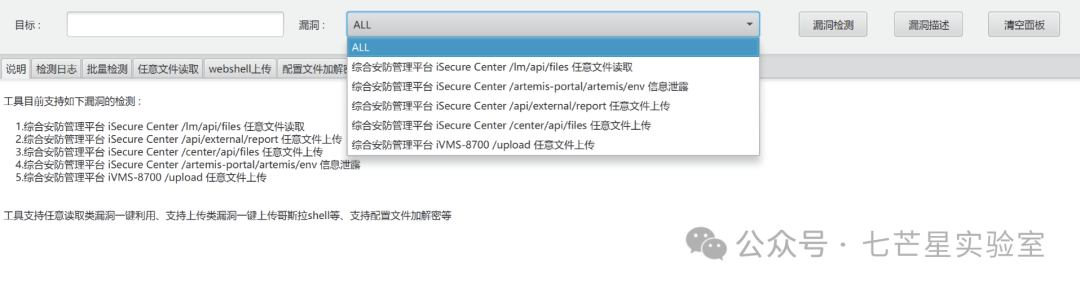 海康威视RCE漏洞批量检测和利用工具目前支持任意读取类漏洞一键利用、支持上传类漏洞一键上传哥斯拉shell等、支持配置文件加解密等