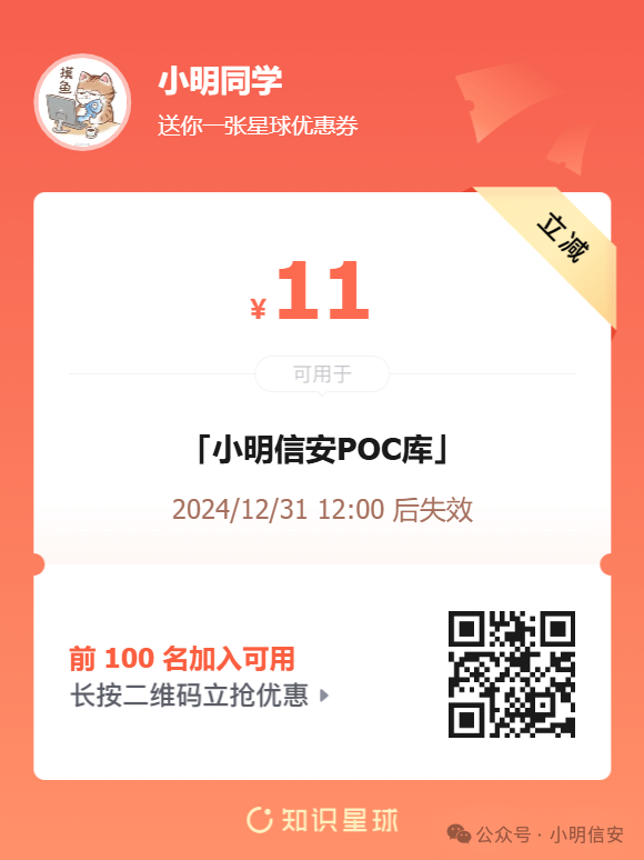 欢迎加入星球,券后价仅39元!!!长期每天更新漏洞POC/EXP