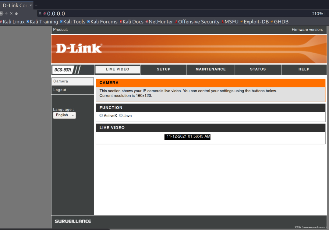 CVE-2019-10999 是 Dlink IP 摄像头的后端服务器程序 alphapd 中的一个缓冲区溢出漏洞,漏洞允许经过身份认证的用户在请求 wireless.htm 时,传入 WEPEncryption 参数一个长字符串来执行任意代码。具体描述以及受攻击的型号、固件版本可以查看参考链接,此处漏洞复现采用的是设备 dcs-932l 固件版本 1.14.04,固件下载链接查看参考链接。