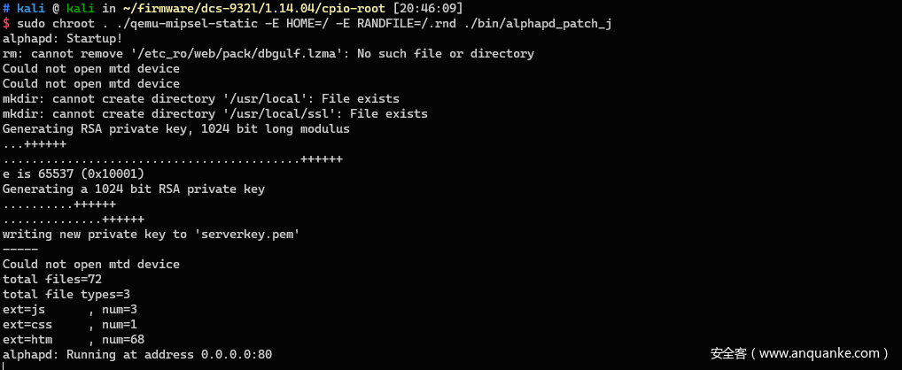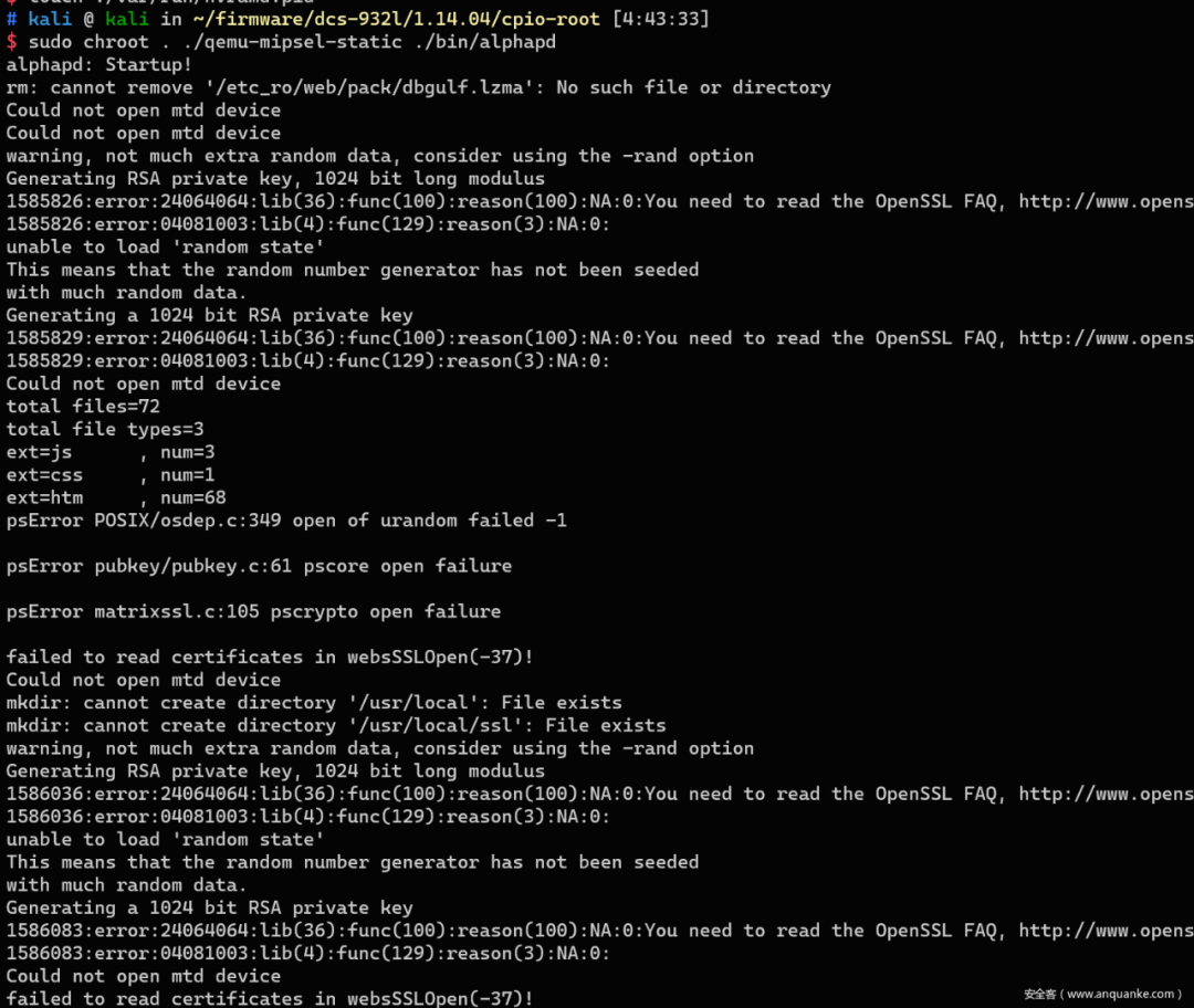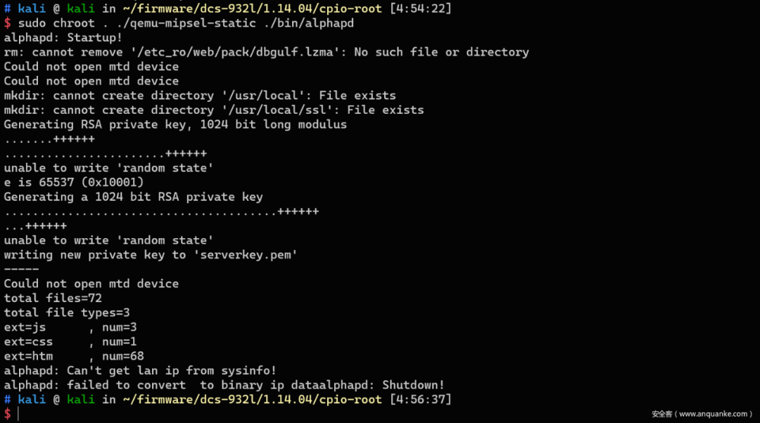 漏洞环境搭建先是使用 qemu-mipsel-static 搭建。