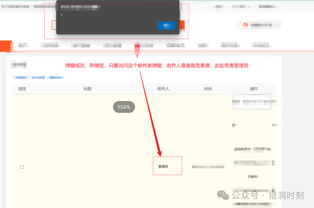 这下是,谁打开邮件收件箱,就会被xss攻击,都不需要去点卡查看信件内容,并且如果运气好的话,也能攻击到管理员。