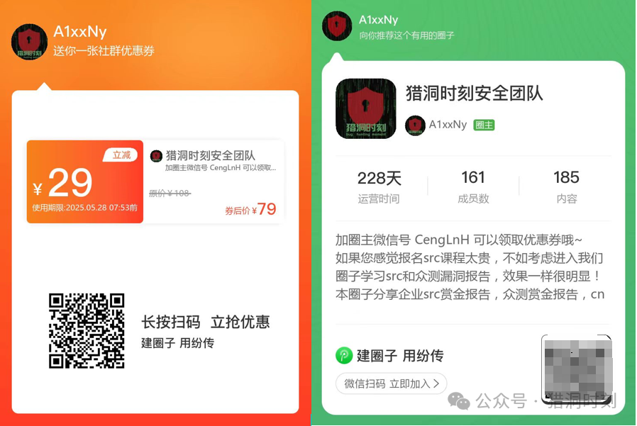 如果师傅您感觉自己挖掘漏洞很困难,但是又觉得报课程太贵,不如尝试限时79元永久加入我们圈子,内容包括企业src赏金报告,众测赏金报告,CNVD/Edu 漏洞报告和挖洞思路,助您快速获得赏金!