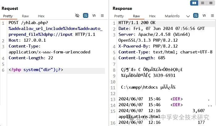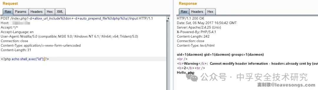 (勾起N年前学文件包含的回忆),将完整的参数信息(需要URL编码)带入到请求参数中,发送请求达到代码执行的目的。