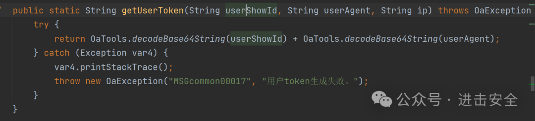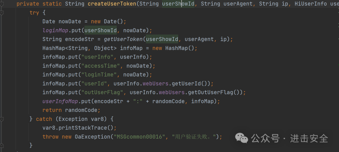 可以看到代码根据userShowId以及Useragent和ip来获取到token,跟入geitUserToken代码查看。