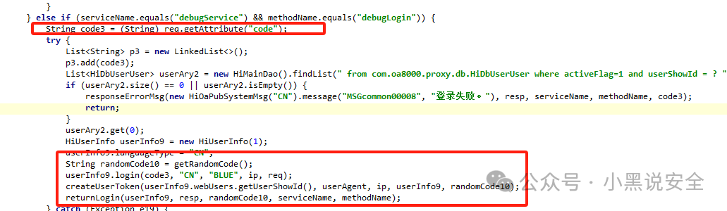 代码比较简单,只检查用户名,只要用户名存在且是激活状态,即可登录成功,所以只需传递code为想要登录的用户名。