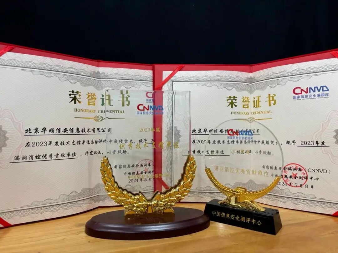 华顺信安荣膺CNNVD年度优秀技术支撑单位、高价值漏洞优秀贡献单位荣誉
