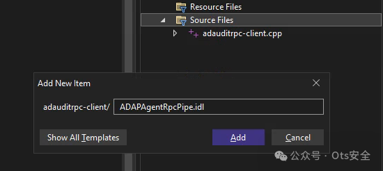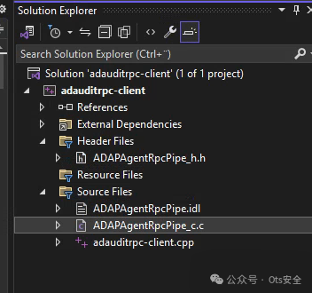 ADAPAgentRpcPipe_c.c文件包含在我们的源文件列表中: