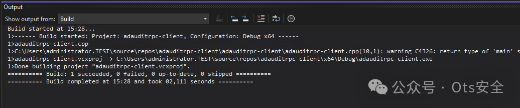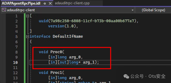Proc0并提供有效参数来测试我们的第一个 ADAuditAgentRpcPipe 程序。
