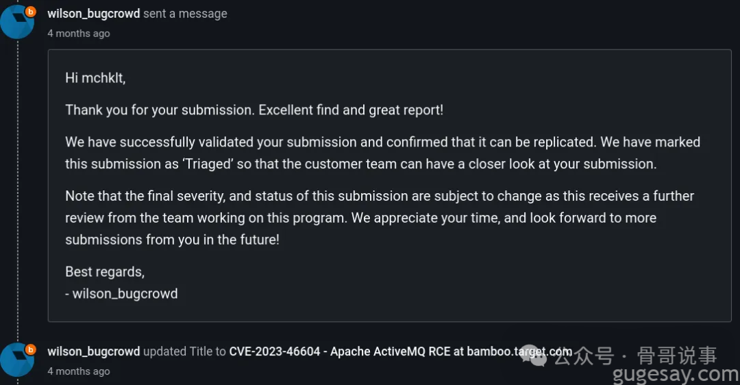 通过PoC进行测试后,确定可被成功利用。于是白帽小哥第一时间提交漏洞报告,很快便获得了厂商的确认。