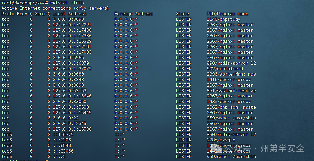为防止在远程传输过程中被窃听等行为,需查看相应端口和服务,如SSH,telnet等,SSH默认已开启,获取相应版本自行搜集版本是否存在漏洞即可,熟悉流程,命令为: