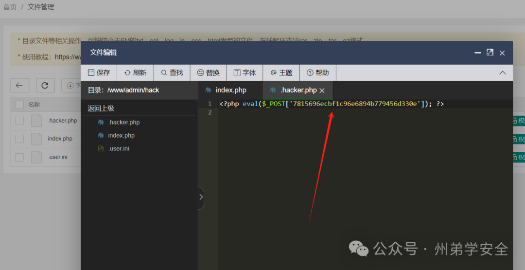 可以看到隐藏文件中的一句话木马的密码是MD5,作为flag提交即可