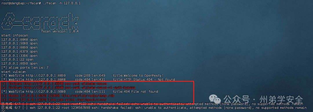 ** 利用/root/fscan/fscan进行漏洞扫描,对存在漏洞的端口进行提交,多个端口以+连接