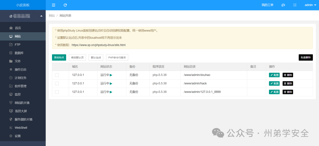 备: 小皮登录地址:http:ip:9080/48D41A/