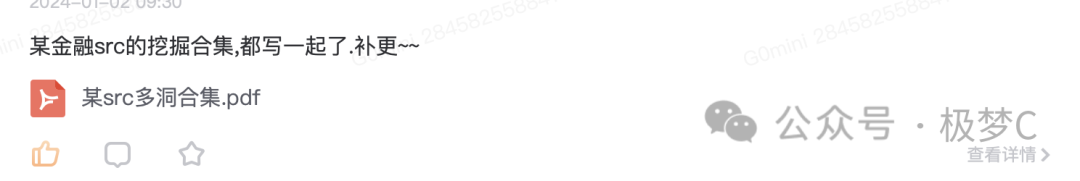 1.src真实漏洞挖掘案例分享(永久不定时更新),过程详细一看就会哦。2.自研/二开等工具/平台的分享。3.漏洞分析/资料共享等。