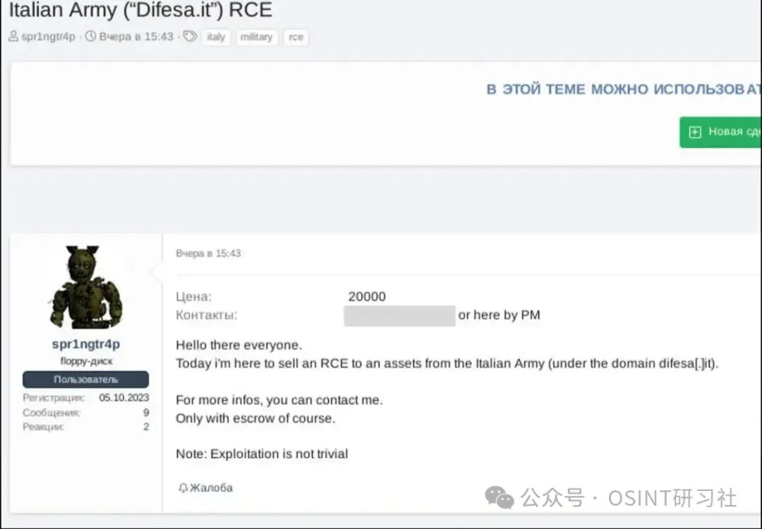 威胁者声称受影响的组织是意大利国防部,这凸显了事态的严重性。涉案网站 difesa.it 属于该政府机构的管辖范围,因此这事关国家安全。