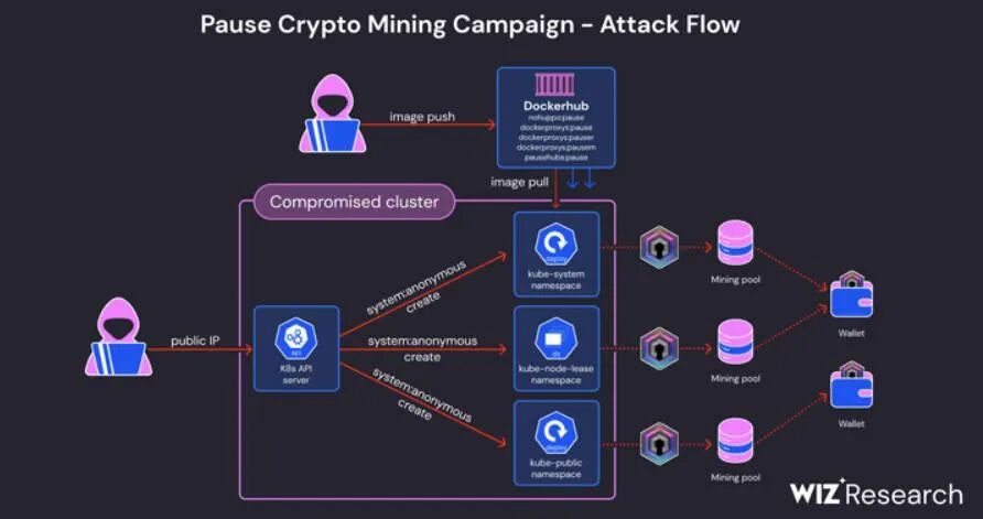 研究人员警告称,一场正在进行的加密劫持活动正针对配置错误的Kubernetes集群来挖掘Dero加密货币。在这次事件中,威胁行为者利用对互联网开放的集群的匿名访问来启动恶意容器镜像,这些镜像托管在Docker Hub上,有些已超过10000次下载。这些Docker镜像包含一个UPX包装的DERO挖矿程序,名为‘pause’。