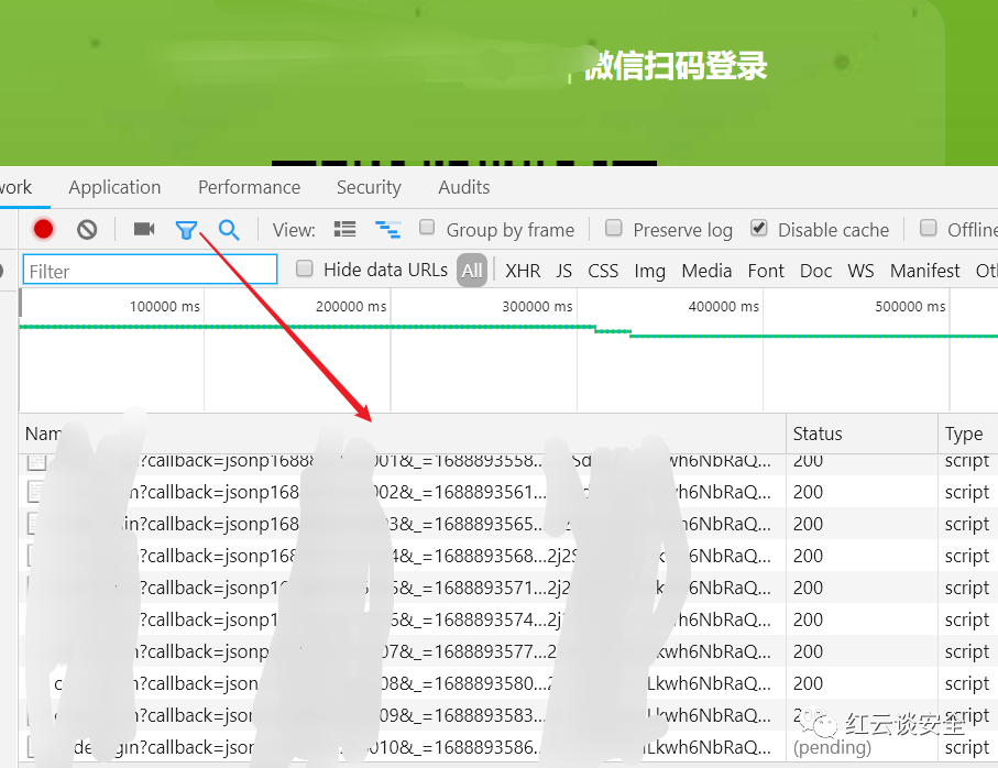 当我们点击授权的时候,就会发现浏览器Web端页面跳转,登录成功!回到最初的微信扫码登录点,浏览器会一直发送请求数据包进入一种循环状态,判断是否扫描了二维码。