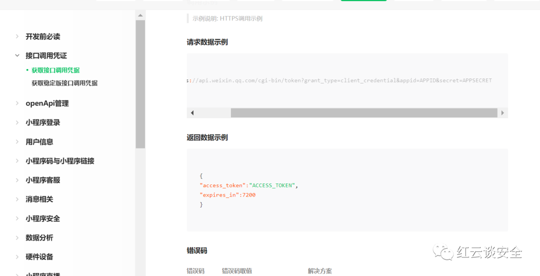 现在系统有太多这样使用微信小程序扫码登录的功能点了,所以我决定好好的去看看开发文档,以后说不一定能挖到非常多洞。通过开发文档了解到accesstoken是微信小程序的调用命脉