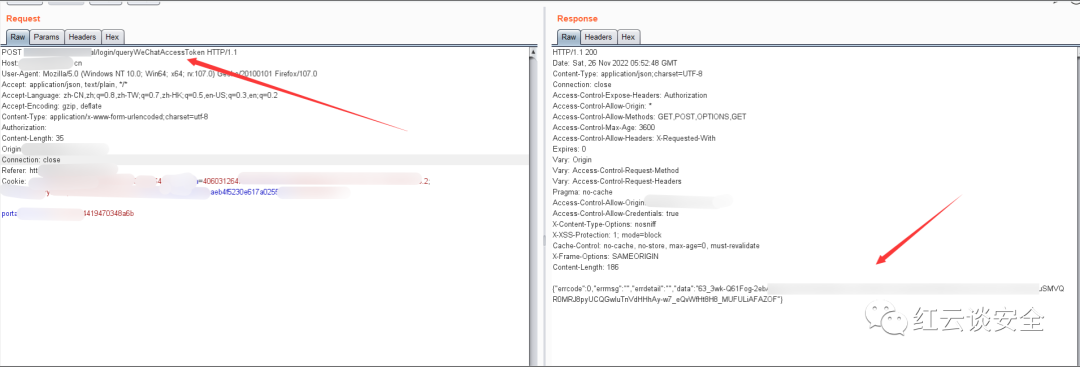 抓到这个接口数据包,返回一大串加密数据,该接口的字面意思就是获取微信的accesstoken