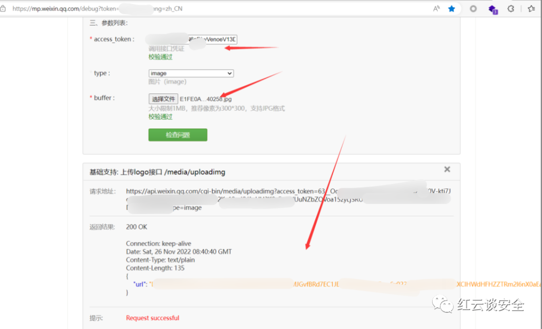 利用该accesstoken去在线开发者工具平台上传一张图片证明accesstoken是微信小程序的accesstoken